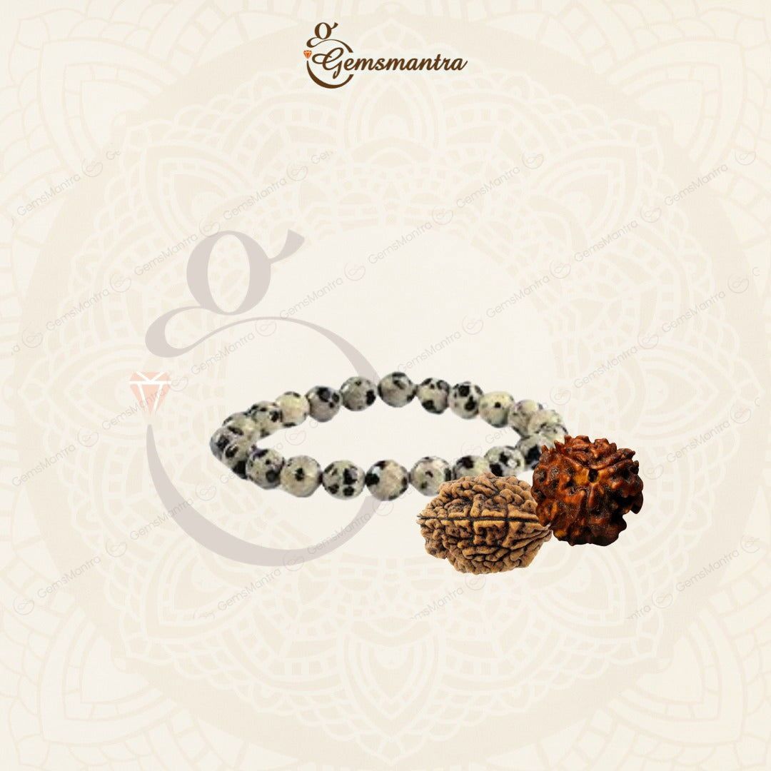 This Rudraksha and Crystal Bracelet combo of 2 Mukhi rudraksha, 3 Mukhi rudraksha and Dalmatian jasper bracelet is specially crafted to provide you with a powerful remedy for the missing numbers 9, 5 or 1 in your Lo Shu Grid.