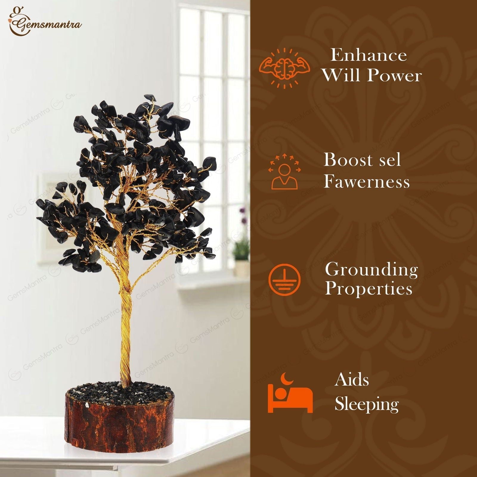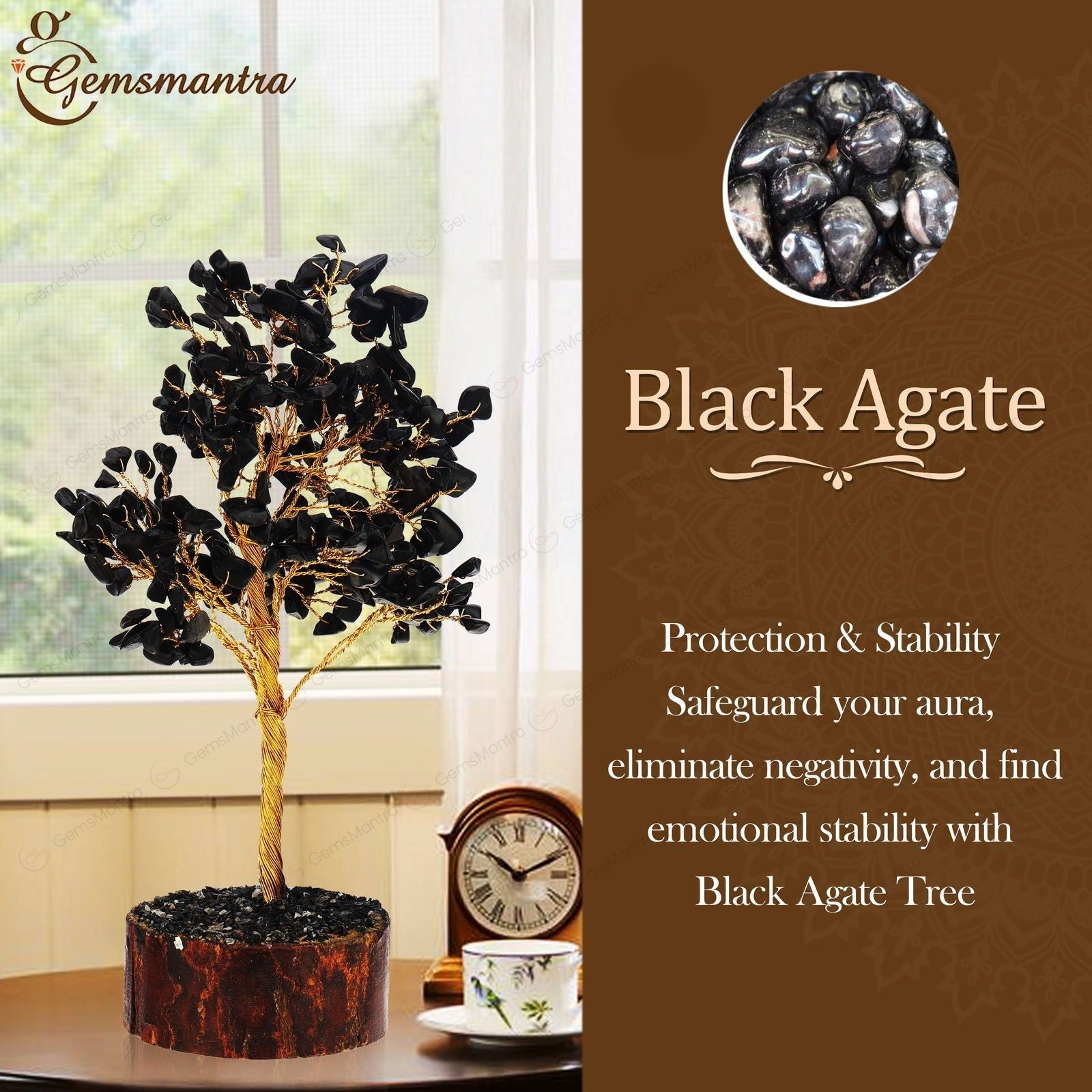 The Large Black Agate Crystal Tree captures the grounding power of Black Agate with its stunning craftsmanship. Adorned with 300 genuine Black Agate beads, this tree is an ideal addition to any space. Its 23 cm height and 7 cm breadth make it perfect for enhancing home or office décor, and it's available in both gold and silver variations.