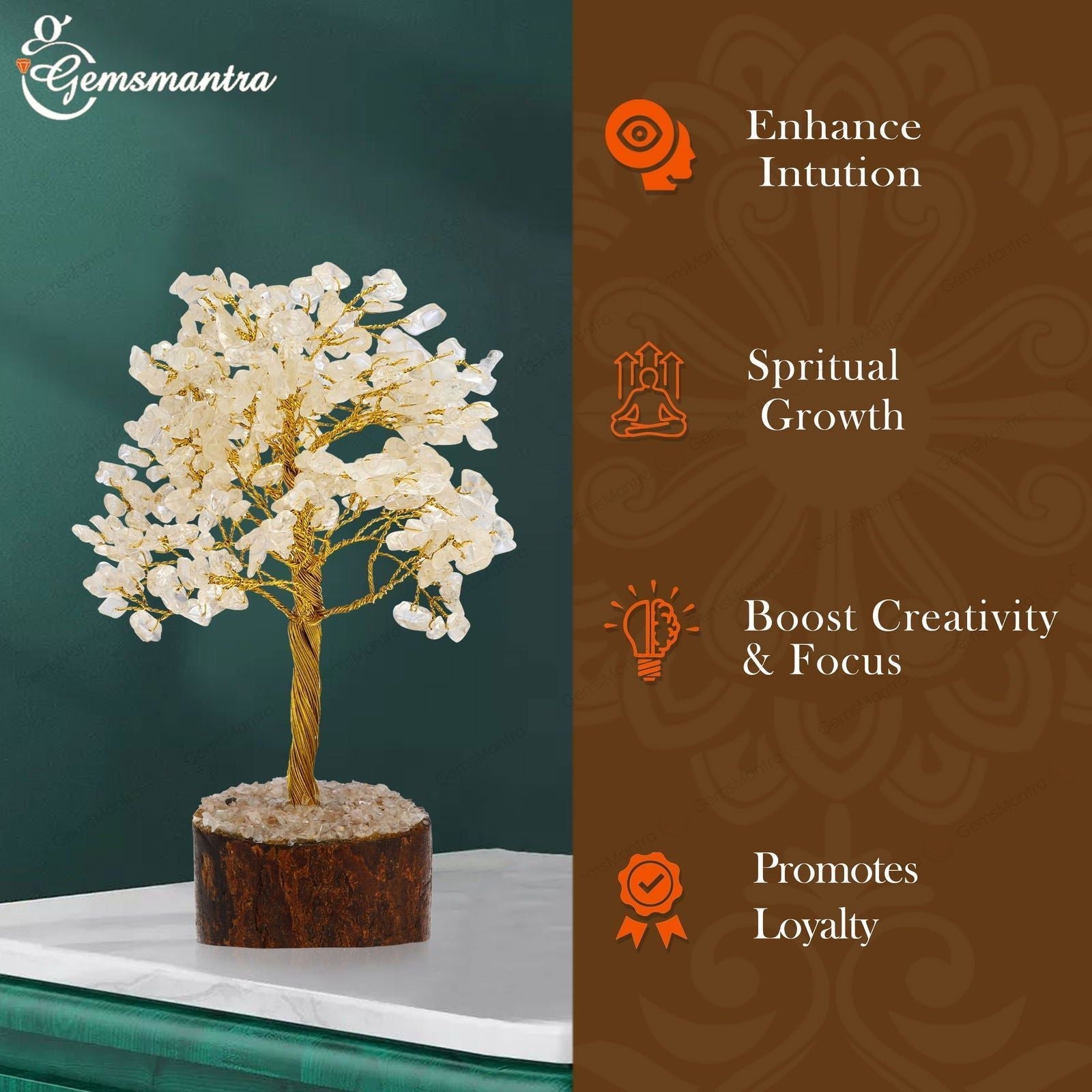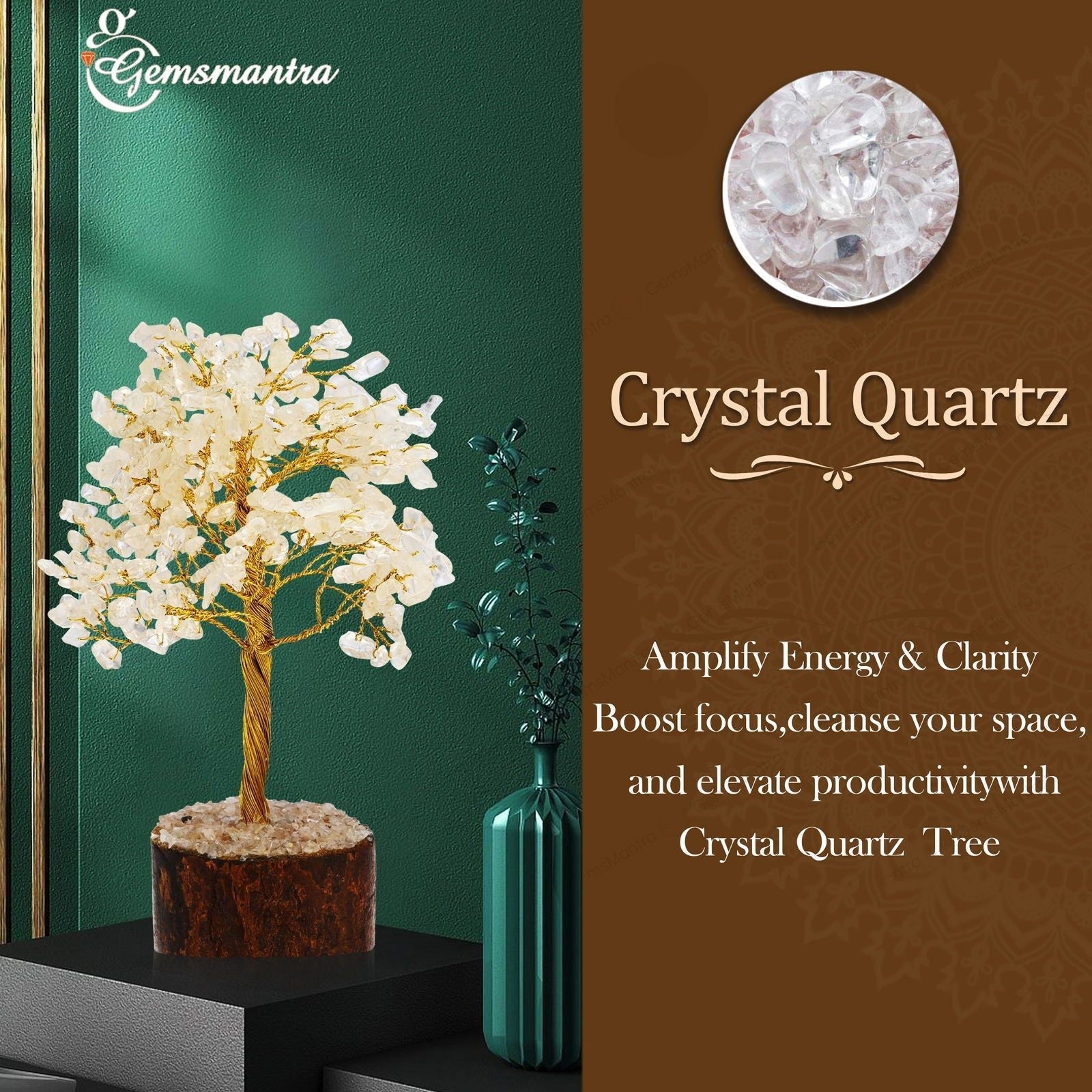 The Large Crystal Quartz Tree is a stunning representation of purity and energy. Crafted with 300 genuine Crystal Quartz beads, this tree brings light and healing into your space. With a height of 23 cm and a breadth of 7 cm, it’s available in both gold and silver variations, making it a versatile addition to your home or office décor.