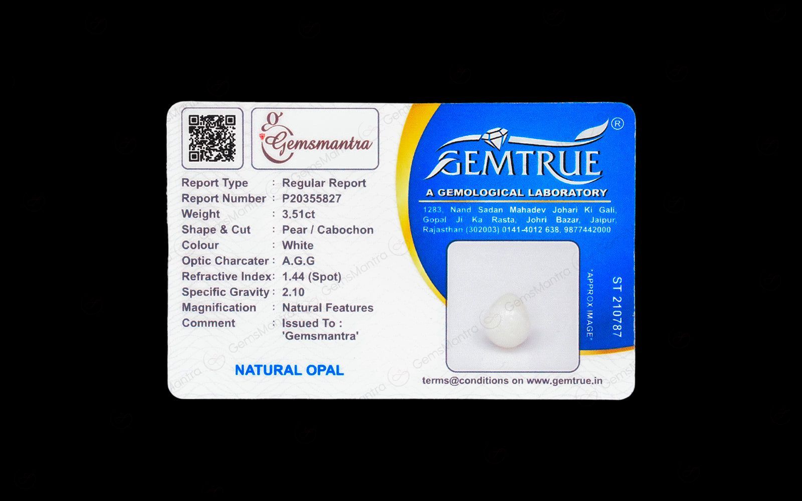 A captivating 3.51-carat untreated Opal mesmerizes with its shifting hues, influenced by Venus for emotional depth and prosperity. It fosters positive energy and self-expression. Certified for authenticity, its pure essence guarantees strong astrological benefits.