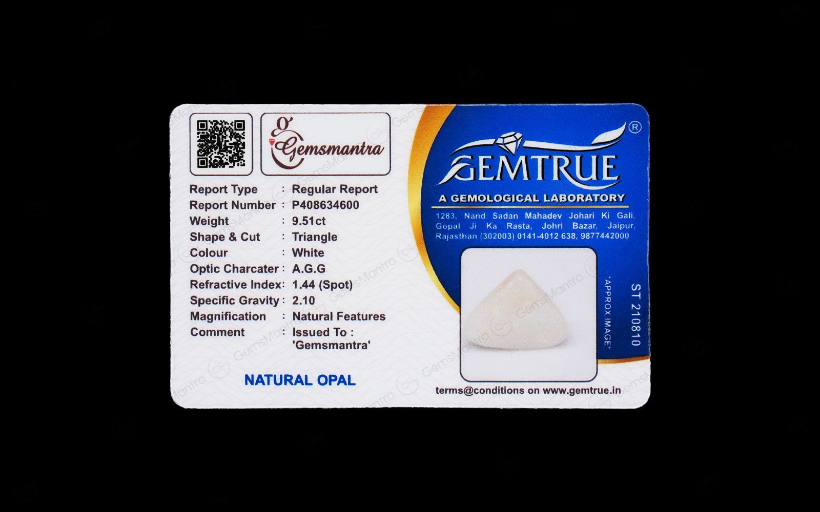 A captivating 9.51-carat untreated Opal shimmers brilliantly, inspiring confidence and joy. It attracts abundance, strengthens relationships, and nurtures expression. Certified for authenticity, its purity ensures strong astrological impact and lasting value.