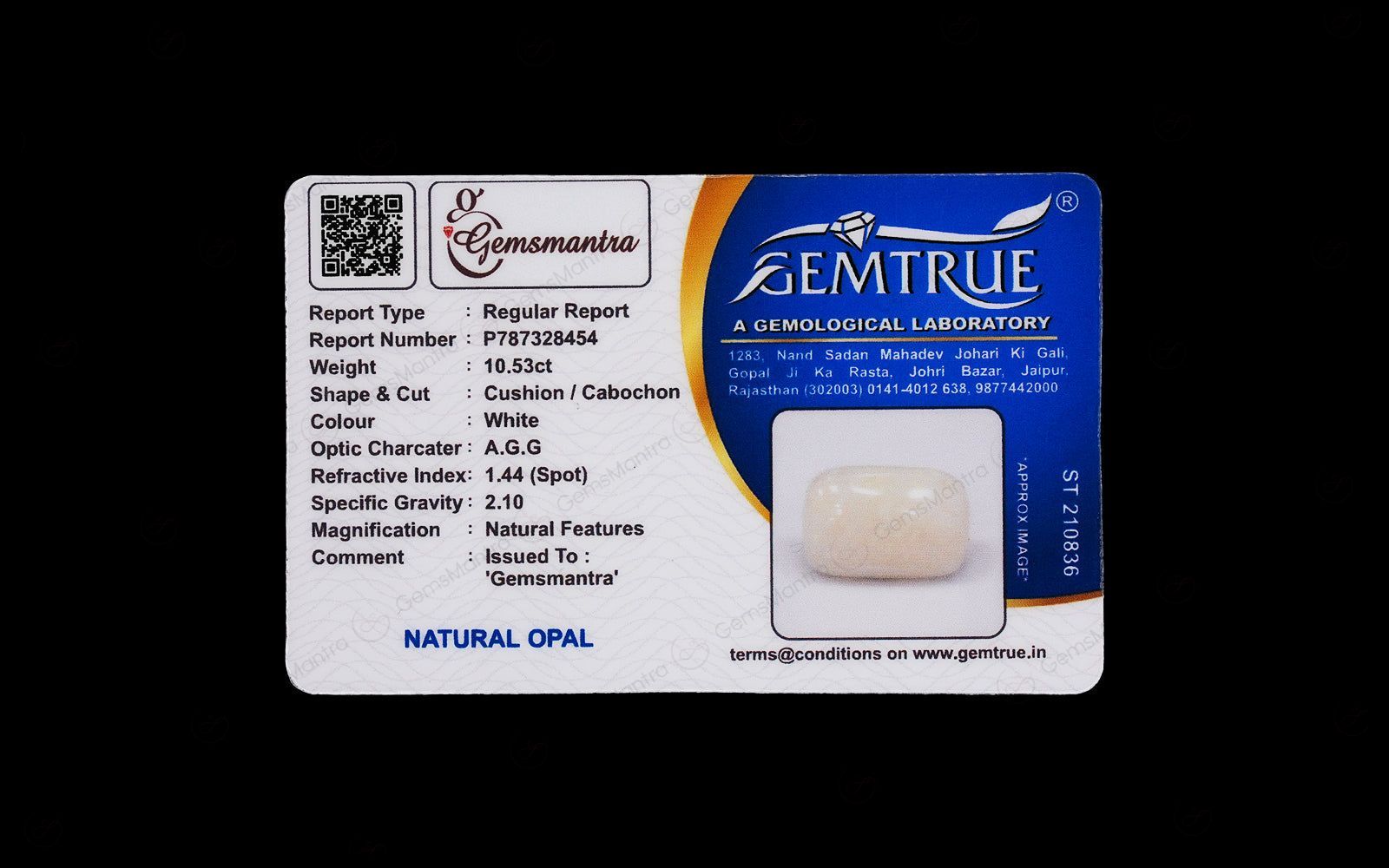 The 10.53-carat untreated Opal gleams with breathtaking luminosity, symbolizing joy and transformation. It enhances spiritual growth, strengthens love bonds, and invites prosperity. Certified for authenticity, its untreated essence guarantees maximum purity and astrological effectiveness.